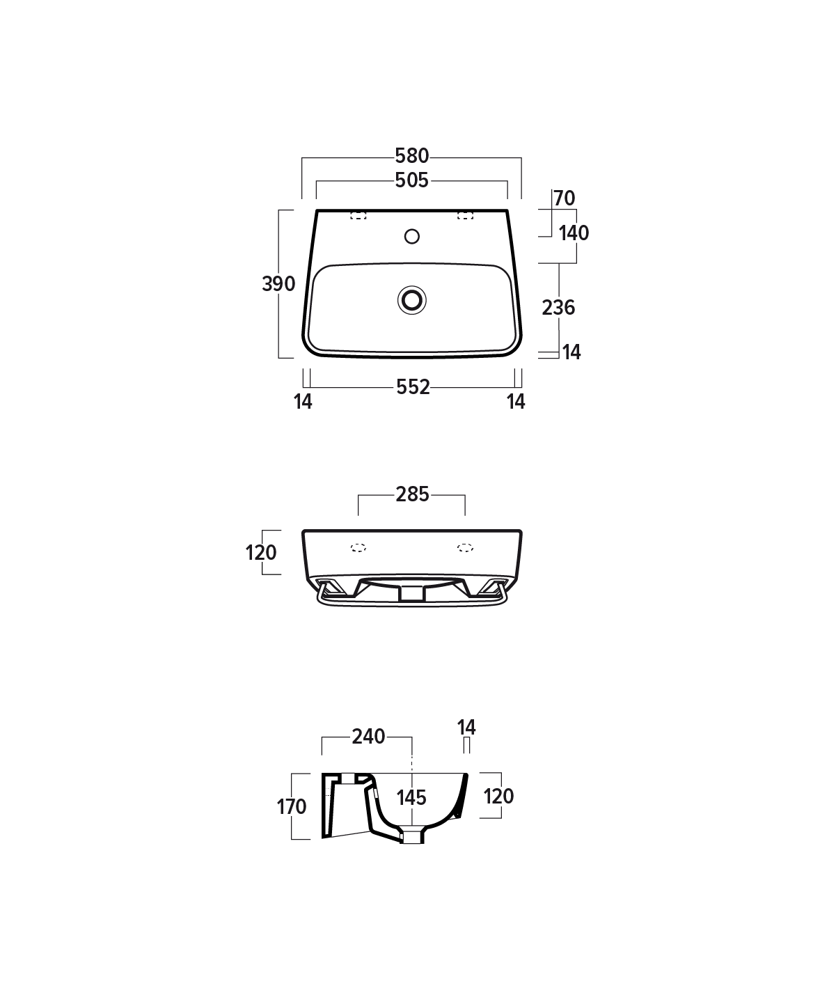 - 570(520) x 320 x 190mm